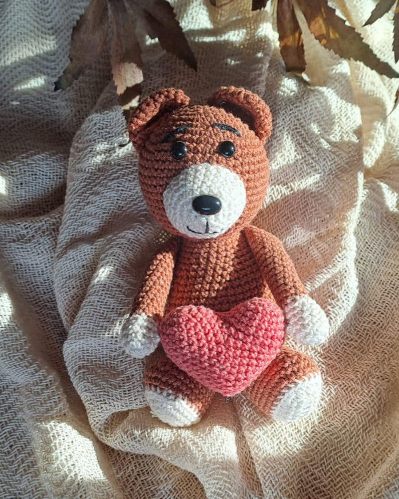 Ajándékozz szívből és készíts egy ölelni való cuki macit saját kezűleg! A horgolt mackó készlet segítségével egy cuki barna mackót alkothatsz meg, aki egy piros szívet tart a kezében. A kis mackó bájos és személyes ajándék lehet és garantáltan mosolyt csal bárki arcára, aki kapja.