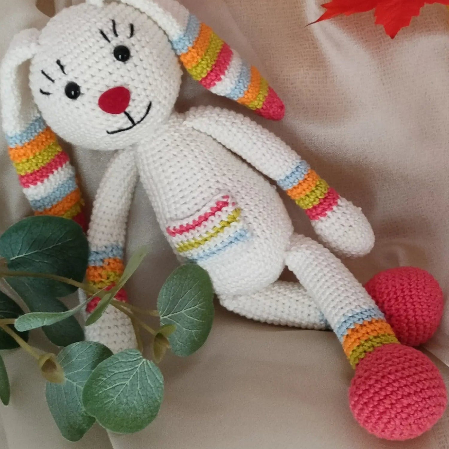 Készítsd el saját kezűleg ezt az elbűvölő színes horgolt nyuszi fiút, aki mindenkit jó kedvre derít aki csak ránéz. Ez a horgoló készlet ideális választás középhaladónak és haladóknak is, azoknak, akik egy különleges, szeretetteljes ajándékot szeretnének készíteni – de dekorációnak is tökéletes lehet. 🐰